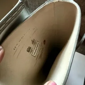 If you jump in muddy puddles you must wear your boots! Official Hunters. By no means in perfect shape, but these have plenty of joy left in them. Metallic silver which reads as neutral.