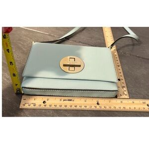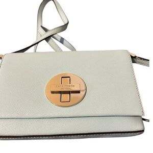 Add a pop-up color to your outfit with this gorgeous Grace Blue Kate Spade New York Crossbody made from durable Saffiano leather this structured mini bag features a gold turn-lock closure with signature branding for a classic polished look. Compact yet functionally sized interior to hold your phone, wallet, etc. Perfect for daily essentials or a night out.