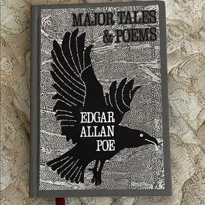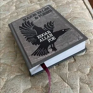 Elegant book featuring Edgar Allan Poe's works. Black and white cover with a striking raven design.