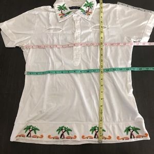 Cotton Polo Top w/Green /Brown Palm Trees Pussers British Virgin Islands Medium