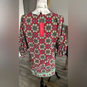 Embrace vibrant style with this multicolor bohemian tunic dress. Perfect for casual outings, it features a lively mix of red, green, and black patterns. Ideal for adding a pop of color to your wardrobe.