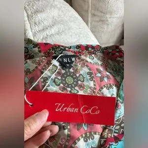 NWT Urban Coco Women’s Size XL 3/4 Balloon Sleeves Tie Neck Tassels Dress Boho