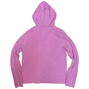 Vintage Y2K Faded Glory Pink Hooded Cable Knit Sweater Ribbed Missy L Fits S/M