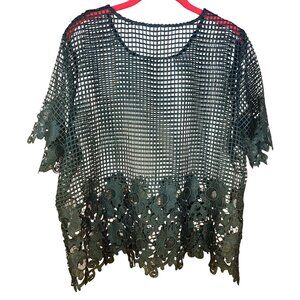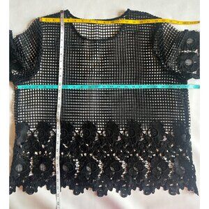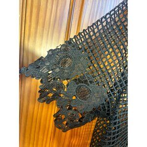 Black Open Mesh Floral Detail Top XL (est.) Whimsy Goth Fairy Goth