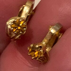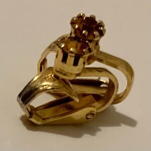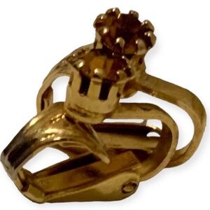 VINTAGE Topaz Color Stones Clip On Gold Tone Earrings Jewelry Beautiful Clip On