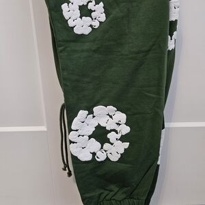 Green denim tears sweatpants in a size large.I have provided pictures with measurements so please check that they fit before buying. Will ship out in 1-3 days.