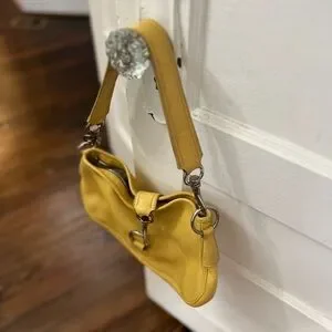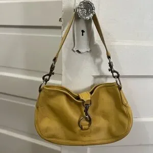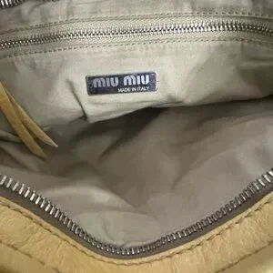 Vintage Miu Miu bag (bought in 2000) in the color of the season butter yellow. Features a zip closure and interior label. Price reflects need for leather cleaning and conditioning. Beautiful and will elevate your outfits I guarantee it. Inspo pictures added to help you see the vision. Added closeups of the marks and scuffs.