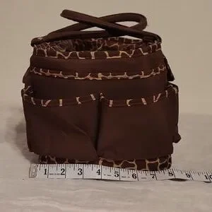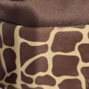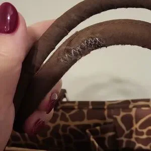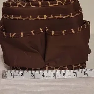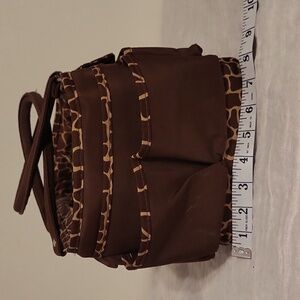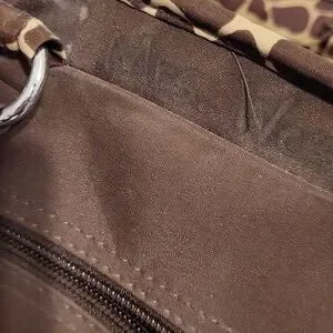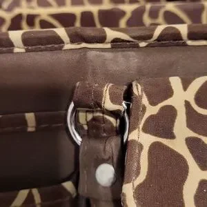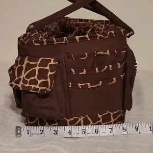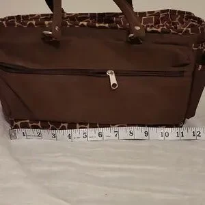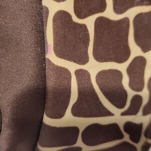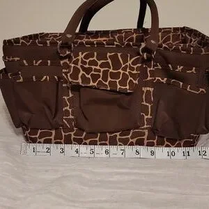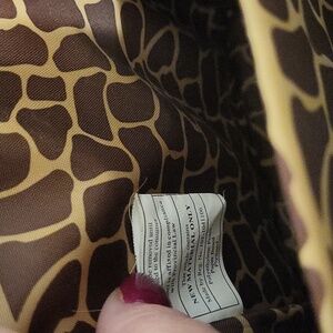 Stylish brown women's bag with a unique giraffe print design. well loved with some wear and tear