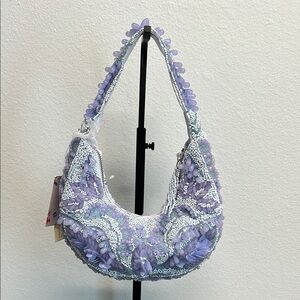 Beautiful beaded hobo bag in shades of purple, perfect for adding a pop of color to any outfit.