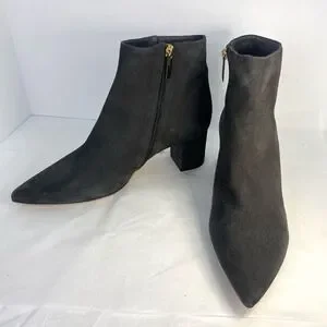 NWOB The essential pointed-toe ankle boot in brownish gray, high quality suede.Impeccably crafted suede molds to flatter the foot in an elegant, timeless silhouette. Wearable block heel is ultra-versatile, pairing effortlessly with both denim and skirts. Padded insole. Zip closure. 100% Kid Suede. Made in Spain.