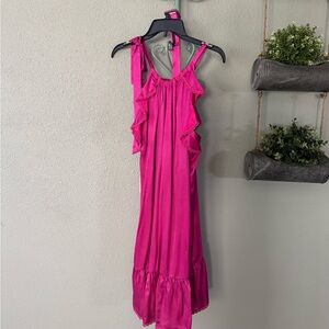 Elegant fuchsia dress with charming ruffles. Perfect for a stylish lounge look. Size M. NWOT