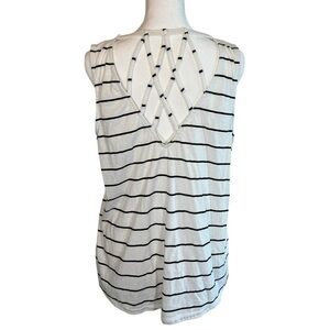 MAURICES RIVERSIDE TANK TOO LATTICE CUT OUT WHITE W BLACK STRIPE SIZE L