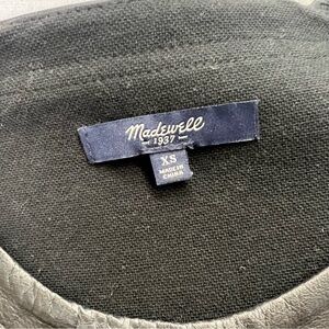 Madewell black shirt dress with zipper detail, pockets and leather trim.