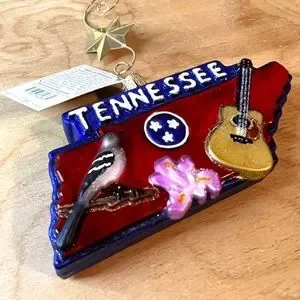 Old World Christmas Tennessee glass ornament in new condition with box. No damage.