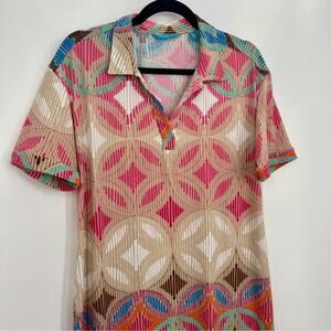 Tori Richard Honolulu Multi Colour Stretch Polo T- Shirt Mini Dress Striped L