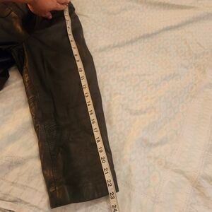 notes: black 100% leather . removable nylon burgundy liner. great winter classic piece. lots of pockets. thinsulate