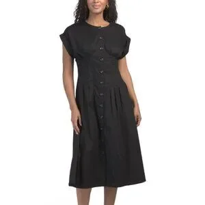 flared hem, button front closure