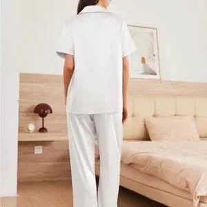 • Silk Pajamas for Women Set: Satin pajama set for women includes short sleeve silk pajama top and loose pj pants silk.This satin sleepwear set can also match with other clothes,suitable for all seasons