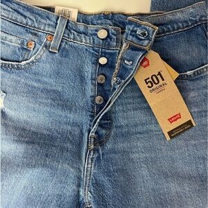 NWT Levi’s 501 Button fly Jean Cropped High Rise Distressed Size 29
