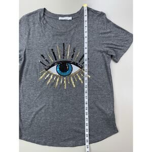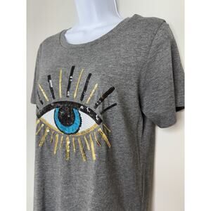 South Parade Sequin Evil Eye Shirt Womens XS Gray Boho Pima Cotton Made In Peru