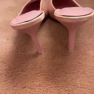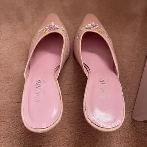 Step into elegance with these Escada pink heels, featuring a sophisticated pointed-toe design and a chic open back. The delicate embellishments on the upper add a touch of sparkle, making them perfect for any special occasion.