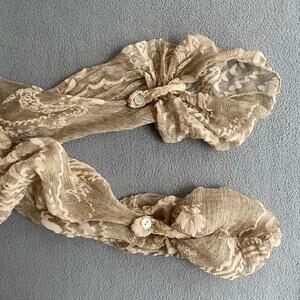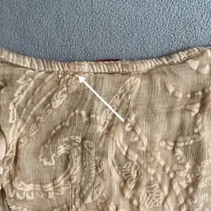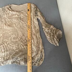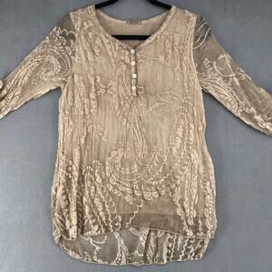 Scandal Italy Crepe Silk Womens Roll Sleeve Blouse S Tan Boho Floral Lagenlook