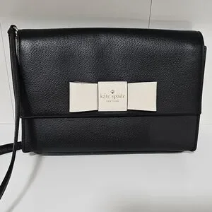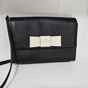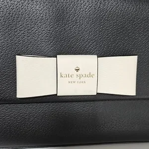 Elegant and stylish, this Kate Spade crossbody bag features a classic black design with a chic white bow accent. Perfect for any occasion.