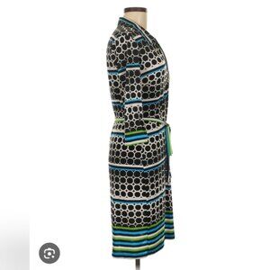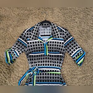 "Mlle Gabrielle" Dress, Stylish Black, Blue, Green And White Patterned Dress