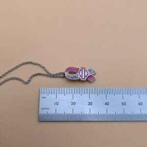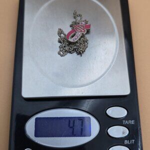 18 Inch Sterling Silver Breast Cancer Pink Ribbon Rustic Necklace A4747