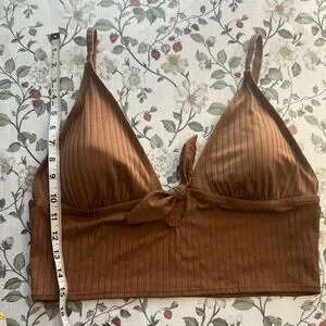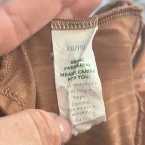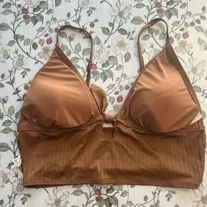 Aerie Ribbed Shine Longline Tie Front Triangle Bikini Top Size XXL