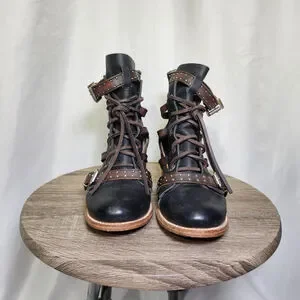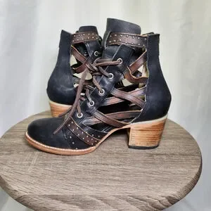 Freebird Cheyenne Multi Strap Lace-Up Leather Bootie Sandals Sz 9 Festival