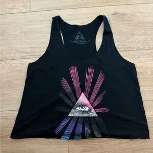 Stylish black tank top featuring a vibrant all seeing eye graphic design. Perfect for casual outings.