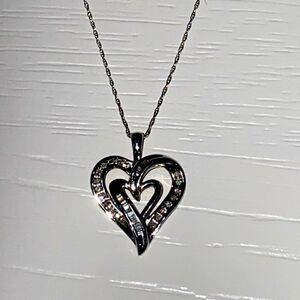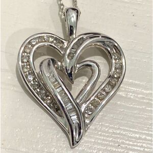 10K White Gold SUN Diamond Double Heart Necklace 18" Chain