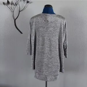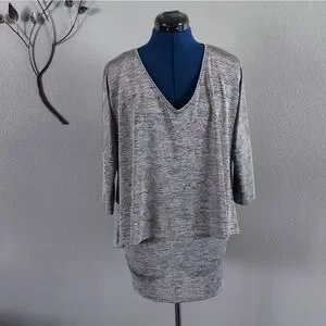 Check out this beautiful top made by Joseph Ribkoff. This is a US size 8, it is made from a poly/spandex blend. It's a layered pullover & it has 3/4 sleeves. It is a a silvery-gray shade, a marled like look. This was worn maybe once, it looks & feels new, it's in VERY Excellent condition.