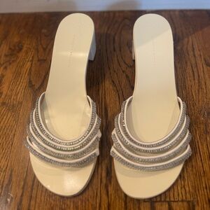 Giuseppe Zanotti Iride 40 White Crystal Block Heel Sandals