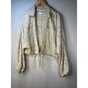 Anthropologie lace knitted adjustable cardigan beige women's XS Small Cropped