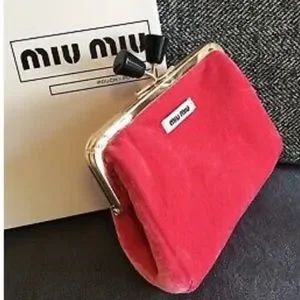 Miu Miu Pink Velvet Pouch Pochette Coin Bag/Purse with Kisslock Closure