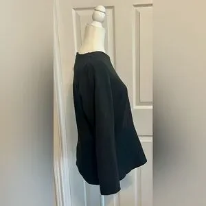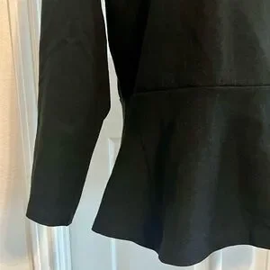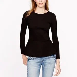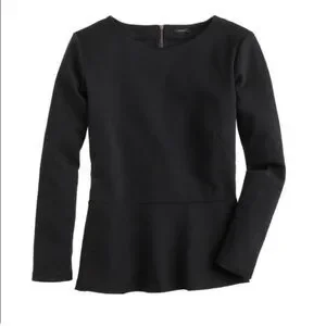 J. Crew Black Ponte Knit Peplum Long Sleeve Top Exposed Zipper Stretch Blouse