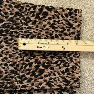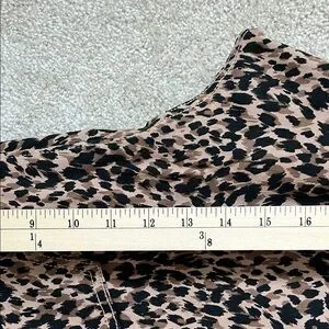 Chic animal print pants by Terra & Sky. Straight Leg and High Rise style. Features a striking black, tan, and brown leopard pattern. Stretchy fabric for a comfortable fit. Ideal for a bold fashion statement.