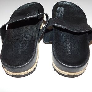 VINCE black leather espadrille grain slip on sandals thongs women 8