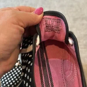 Chic Keds with a playful polka dot pattern. Ideal for everyday style. Worn once for breast cancer event we had 50’s costumes. From smoke free pet free home