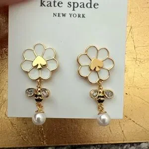 *GOLD-TONE DAISY, BUMBLEBEE GLASS PEARL DROP DETAIL