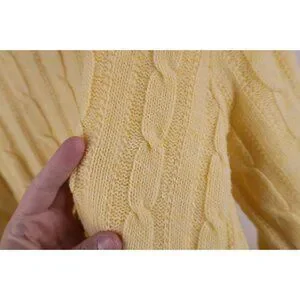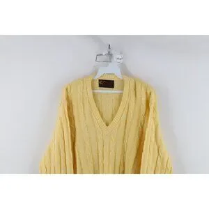 Vtg 70s Streetwear Mens Large Blank Chunky Cable Knit V-Neck Sweater Yellow USA
