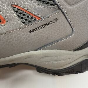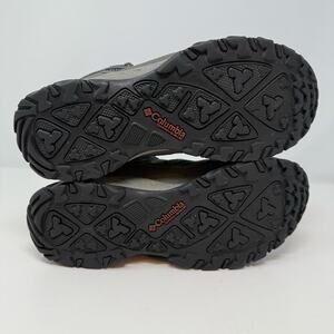 Columbia Men's Hiking Boots. In the colors grey and orange. Tagged size 9. These men's Columbia boots feature a waterproof upper, ankle support for hiking and a Omnigrip train tread. Style number YM5219-D28. In preowned condition with minimal signs of wear. Slight wear on front corner of boot, see pictures - priced accordingly.