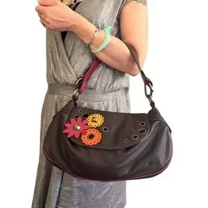 Moschino Cheap and Chic Brown Leather Studded Flower Hobo Handbag Purse