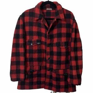 Vintage 50s 60s T. Eaton Wool Red Black Buffalo Plaid Lumberjack Shirt Jacket Shacket