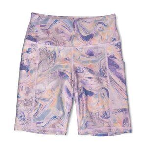 Becco Apparel Pink and Purple Marble Tie Dye Swirl Print Athletic Biker Shorts Women's Size Small