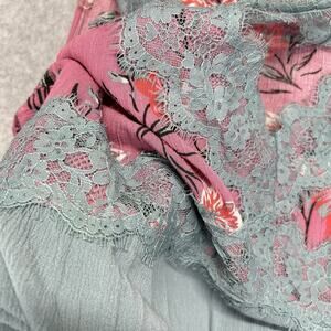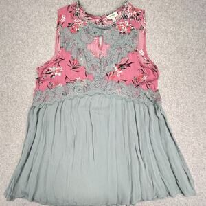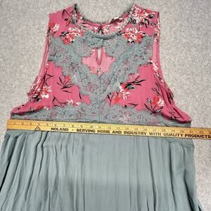 Umgee Sleeveless Dress Womens Large Pink Blue Floral Lace Keyhole Gauzy Flowy