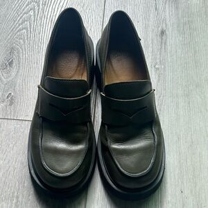 Green leather chunky Milah loafers with OrthoLite® Recycled™ footbeds and EVA outsoles. Great condition, only work a few times.