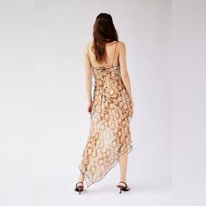 Effortlessly eye-catching, this unique dress is featured in a semi-sheer fabrication and printed design with a classic scoop-neckline and asymmetric hem.